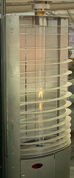 Formschöne mobile »Kuscheldecke« in anpassungsfähiger schlanker Figur — hier kommt der Kaminofeneffekt zum Einsatz. Eine Wärmeausstrahlung auf extravagante Art — Edelstahl wird zum Edelstein — »endlich warme Füße und Hände« — Frauen werden diese Art von Sonne lieben.